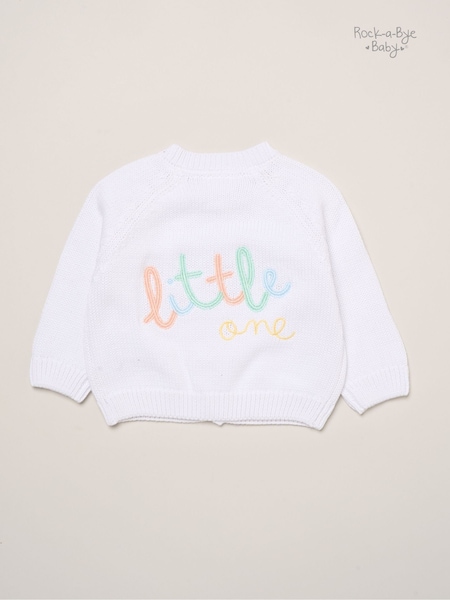 Rock-A-Bye Baby Boutique White Born In 2026 Embroidered Knitted Cardigan