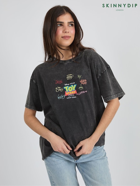 Skinnydip Grey Disney Toy Story Poster Acid Wash T-Shirt