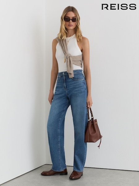 Reiss Mid Blue Sabel Petite Barrel-Leg Jeans