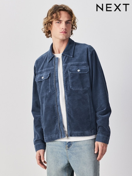 Blue Cord Zip Through Shacket