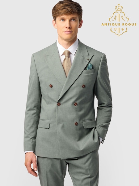 Stone Double Breasted Tailored Fit Linen Blend Texture Suit Jacket