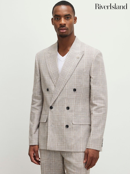 River Island Natural Slim Fit Linen Check Suit Jacket