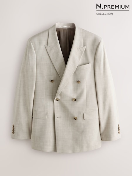 Neutral N.Premium Tailored Fit Double Breasted Wool Blend Motionflex Marl Texture Suit Jacket