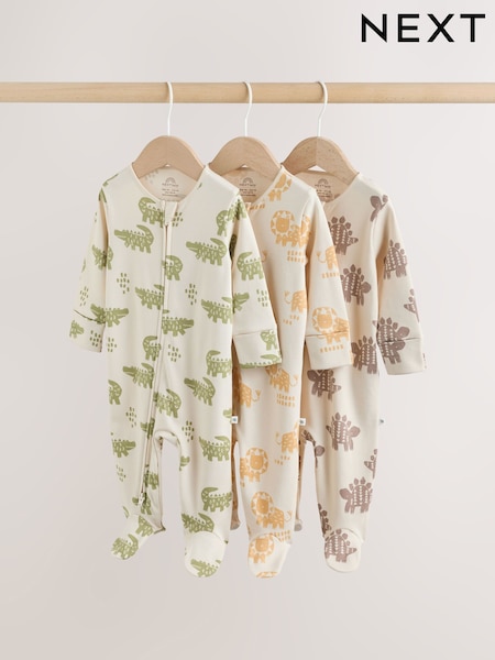 Multi Safari Two Way Zip Baby Sleepsuits 3 Pack (0mths-2yrs)