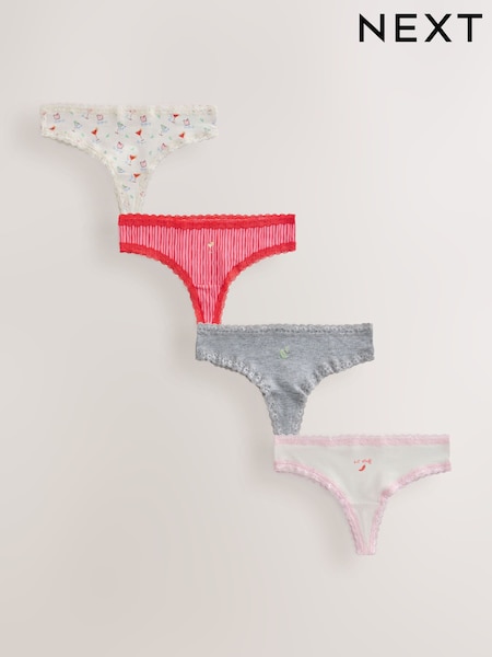 Margarita Thong Cotton and Lace Knickers 4 Pack