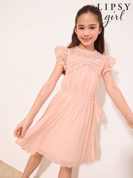 Lipsy Pink Lace Bow Yolk Pleated Occasion Dress (5-16yrs)