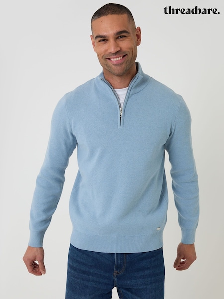 Threadbare Blue Cotton Blend Knitted Quarter Zip Jumper