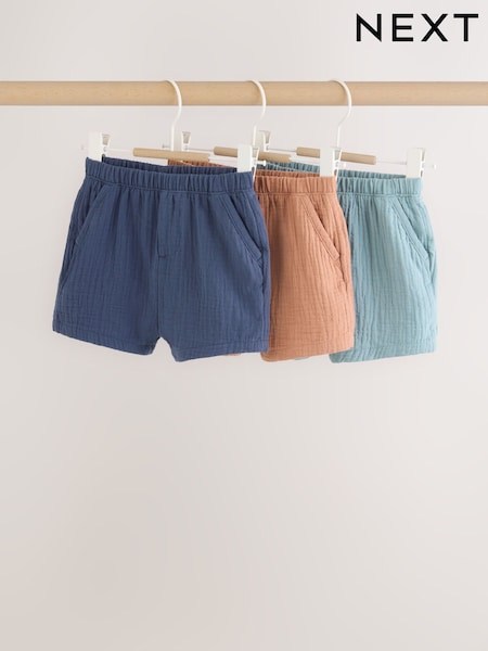 Blue/Brown Woven Shorts Baby 3 Pack (0mths-2yrs)