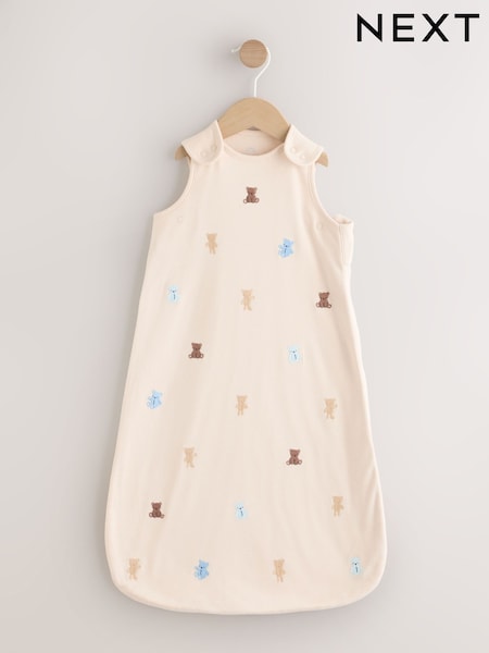 Neutral/Blue Embroidered Bears 1 Tog Sleeveless Baby Sleepbag