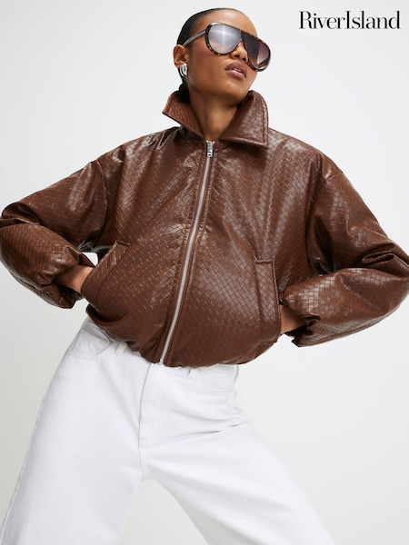 River Island Brown Faux Suede Dropped Bomber Jacket