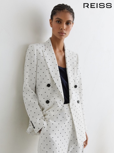 Reiss White/Navy Beatrix Polka-Dot Double-Breasted Suit Blazer