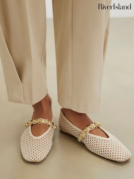 River Island Cream Crochet Embellished Ballet Pumps