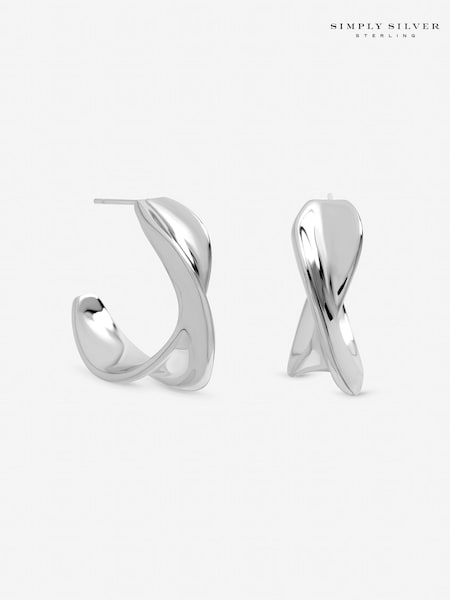 Accessorize 925 Sterling Silver Twist Hoop Earrings