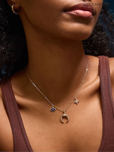 Accessorize Gold Tone 14ct Gold-Plated Evil Eye Charm Celestial Necklace
