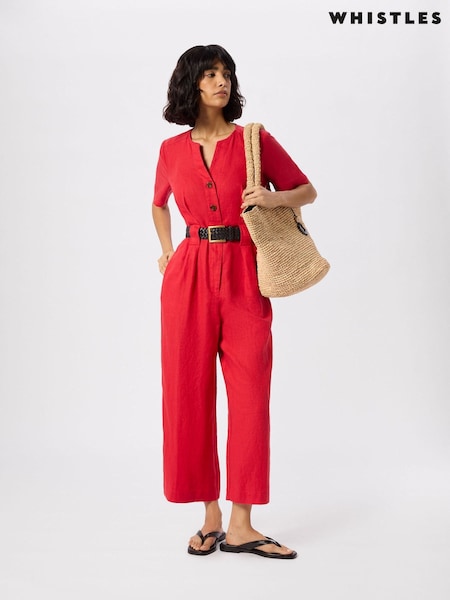 Whistles Red Petite Fiona Linen Button Jumpsuit