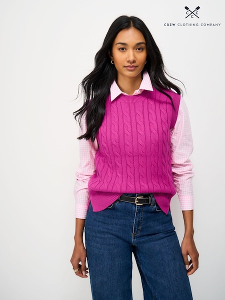 Crew Clothing Company Pink Merino Blend Harmony Cable Knit Vest