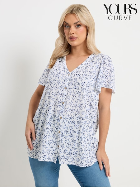 Yours Curve Blue Linen Blend Short Sleeve Blouse