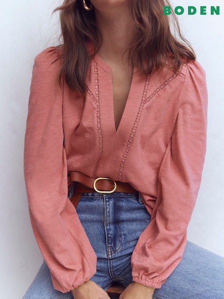 Boden Pink Poppy Long Sleeve Blouse