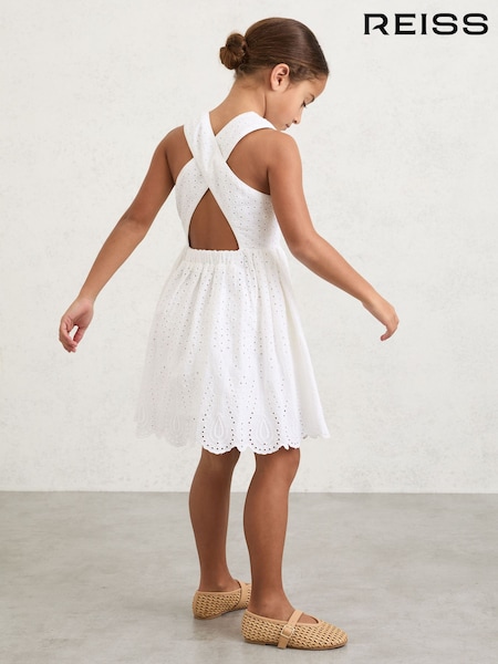 Reiss White Malia 3-9 yrs Cotton Broderie Cross-Back Dress