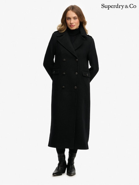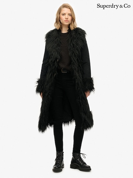 Superdry Black Fuji Faux Hood Mid Length Coat