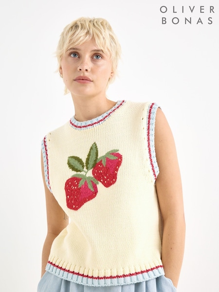Oliver Bonas Cream Embroidered Knitted Tank Top
