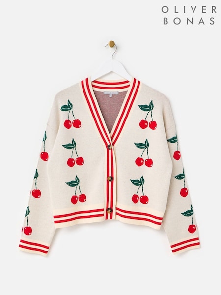 Oliver Bonas Cream V-Neck Knitted Cardigan