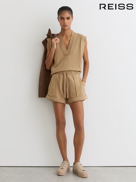 Reiss Tan Neutral Willa Cotton-Blend Drawstring Sweat Shorts