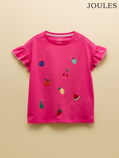 ピンク - Joules ガールズ ウェイビー フリルスリーブ Tシャツ