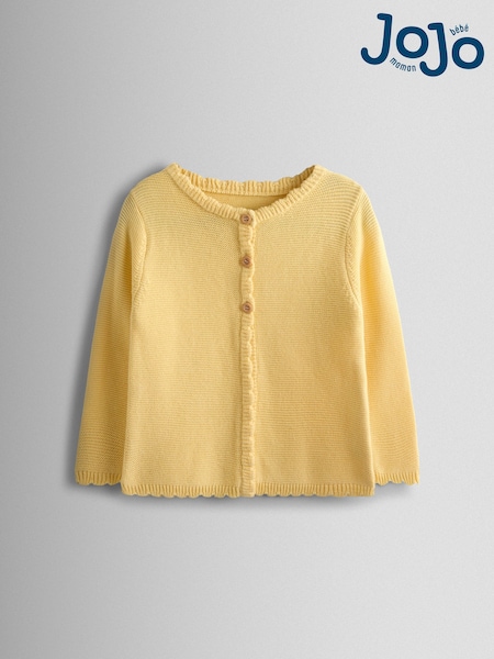 ブライトイエロー - JoJo Maman Bébé クラシック・コットンスカラップデザイン・カーディガン