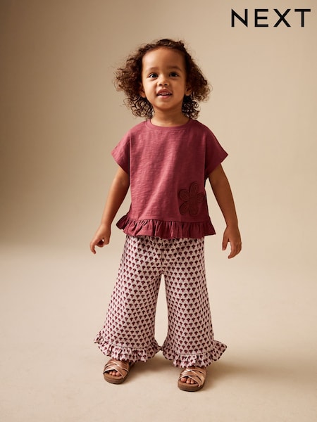 レッド / ブラウンフラワー - 半袖トップス&ワイドパンツセット(3か月~7歳)