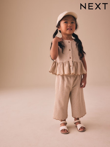 ニュートラル ストライプ - ペプラムタンクトップス&ワイドパンツセット(3か月〜7歳)