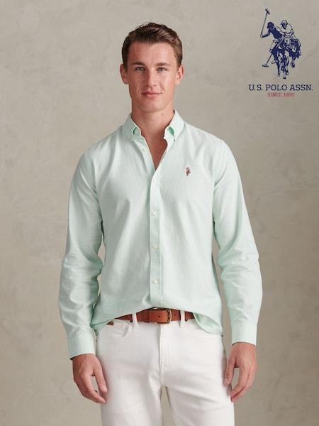 ライトグリーン - U.S. Polo Assn. ピーチ加工オックスフォードシャツ