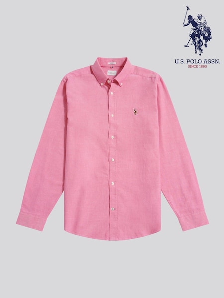 ピンク - U.S. Polo Assn. リネン混 メンズ シャツ