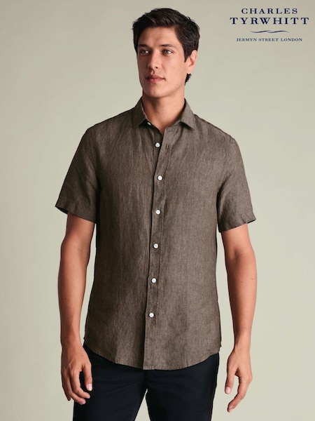 ブラウン - Charles Tyrwhitt 無地ピュアリネン半袖シャツ