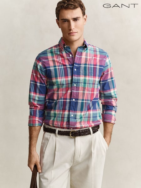 レッド - Brook Taverner マドラスチェック オックスフォード コットンシャツ