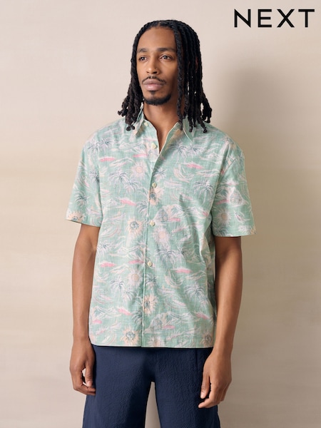 グリーン - ハワイアンプリント 半袖 シャツ