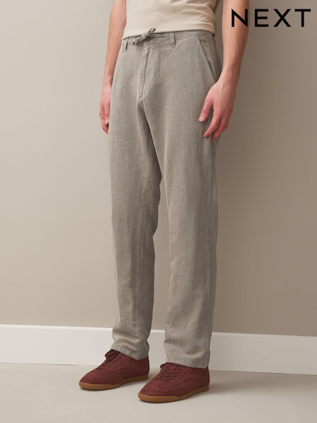 ブラウン/ライトグレー - リネン コットン ストレッチ ドローストリング パンツ 2 枚組