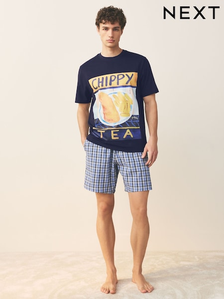 ネイビー ブルー - Frankie Thorp Jersey Short Sleeve Pyjamas Set