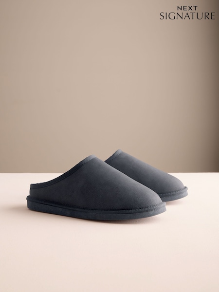 ブラック - Signature スエード ミュールスリッパ フェイクファー裏地付き
