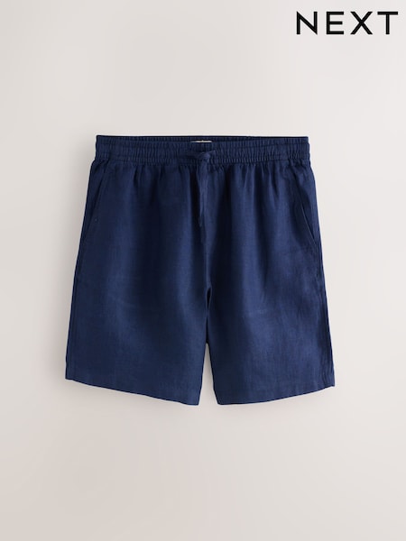 ネイビー - 100% Linen Drawstring Waist Shorts