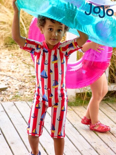 JoJo Maman Bébé ストライプ オールインワン ラッシュガード スイムスーツ