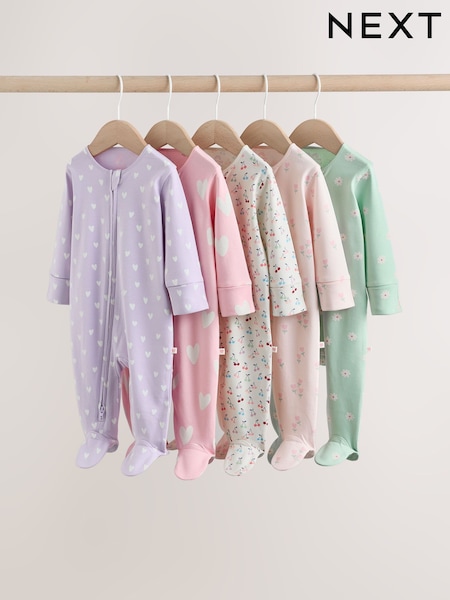 パステル - ツーウェイ ジップ ベビー パジャマ 5 枚組(0 か月 ~ 2 歳)