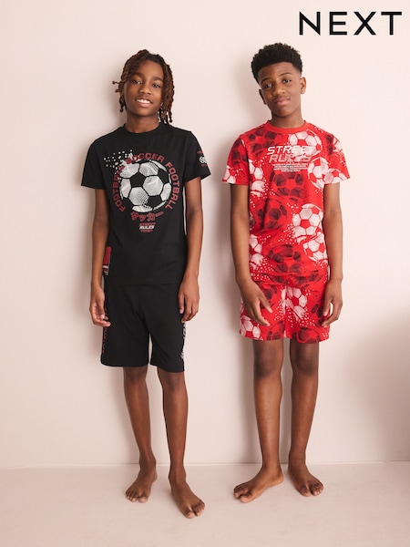 レッド / ブラック サッカー - ショート パジャマ 2 枚パック(3〜16 歳)