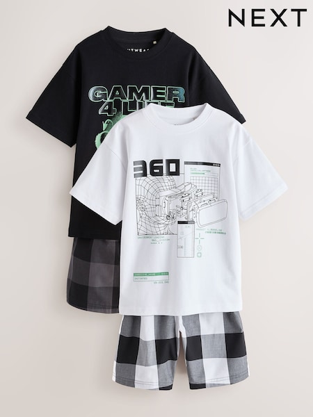 ブラック/ホワイト チェック柄 - ショートパジャマ 2枚組(4~16歳)