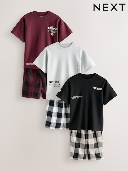 ブラック/ホワイト/レッド チェック - ウーブン ショート パジャマ 3 組セット(3 〜 16 歳)