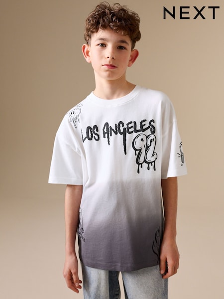 グレー/ホワイト ディップダイ グラフィティ - 半袖 グラフィック Tシャツ(3 ~ 16 歳)