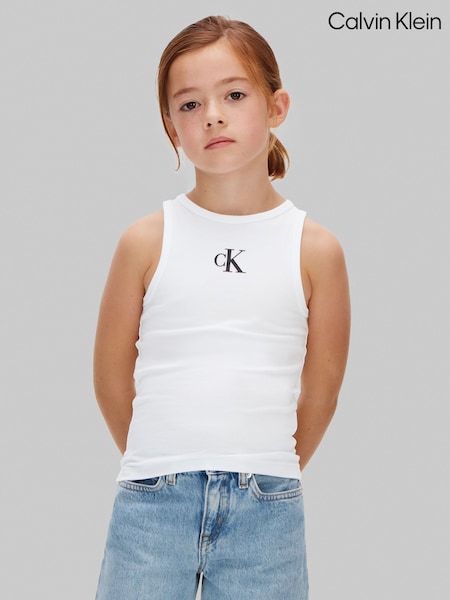 ホワイト - Calvin Klein ロゴ入りタンクトップ