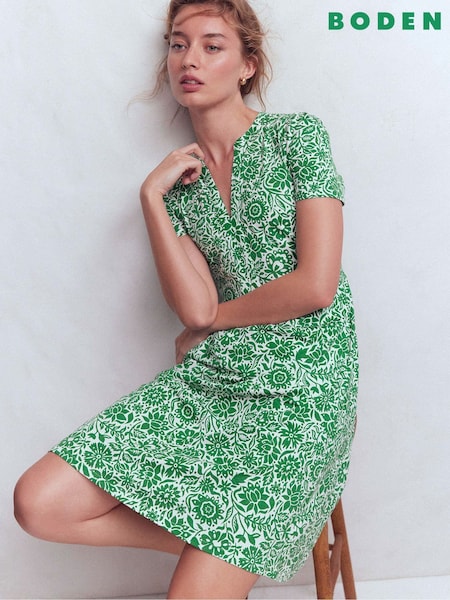 グリーン フローラル - Boden Naomi ショートジャージードレス