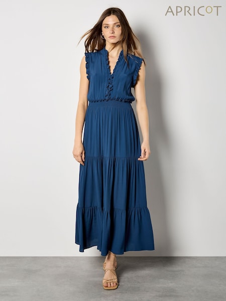 ブルー - Apricot V-Neck Ruffle Tiered Maxi Dress