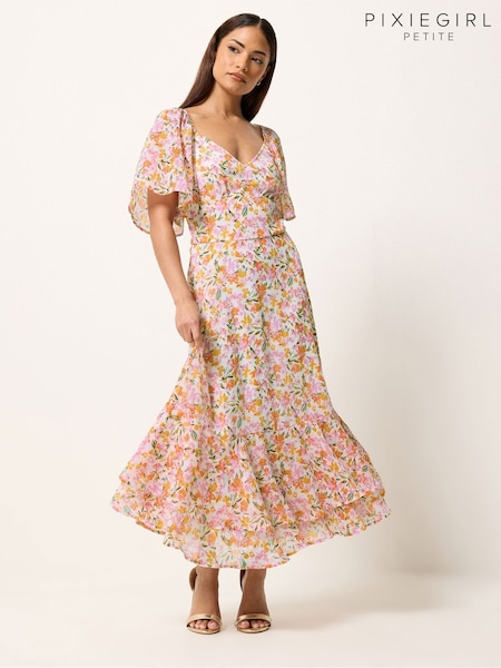 PixieGirl Petite Floral Chiffon Frill Tiered Dress